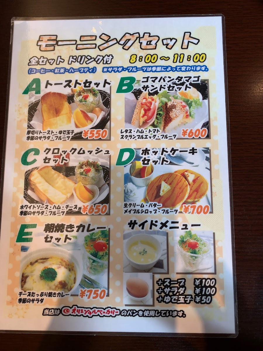 Introducing the menu of Café de Karan, a charming café nestled in Koryo, Nara, where culinary artistry meets comfort. The café offers an exquisite selection of meals that beg to be savored. One highlight is the 有頭大海老フライランチ, featuring large, juicy prawns paired with soup, salad, rice, dessert, and a drink, all for JP¥2,300. Early risers can enjoy the モーニングセットA, which includes specialty coffee, soft bread, boiled eggs, and seasonal fruits, priced at a delightful JP¥800.